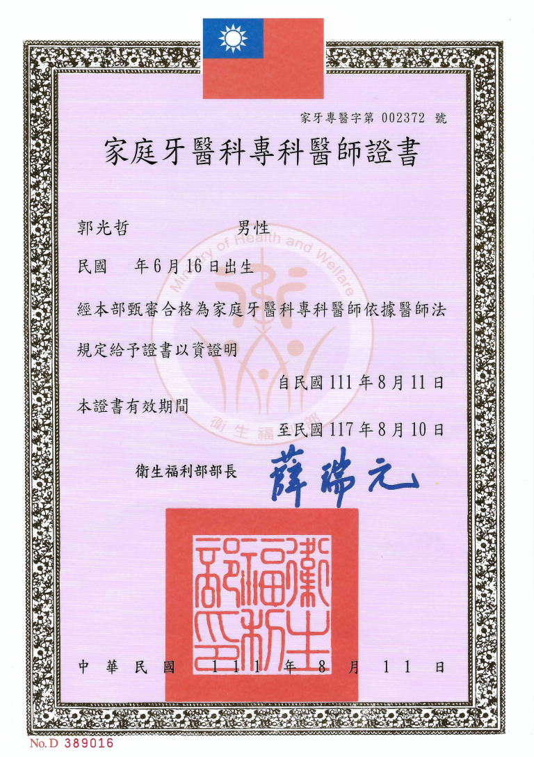 關於我 全口重建 All on X 全口重建 All on X Micron Mapper 數位取模 All on X 常見問題 Navident 4D 導航植牙 Navident 4D導航植牙 微創導航植牙 導航植牙 Q&A 成功案例分享 All on X 張小姐 All on X 于先生 All on X 張小姐(2) 美學全瓷貼片 關於我 全口重建 All on X 全口重建 All on X Micron Mapper 數位取模 All on X 常見問題 Navident 4D 導航植牙 Navident 4D導航植牙 微創導航植牙 導航植牙 Q&A 成功案例分享 All on X 張小姐 All on X 于先生 All on X 張小姐(2) 美學全瓷貼片 立即預約 以人為本,醫人也醫心 郭光哲醫師在治療中仔細講解過程步驟,緩解病人的緊張情緒;放慢治療步調,降低病人治療中的疼痛。完整妥善的溝通,設計出符合每個人的治療計畫。簡單的問候,親切的對談讓看牙不再只是痛苦的折磨。 醫療,與時俱進的科學 醫療是隨著時間不停進步的科學,許多過時的傳統觀念已經慢慢被推翻。郭光哲醫師犧牲下班和週末的休息時間,參加一場又一場的研討會、課程,就是希望給自己的病人當下最適合的治療。帶著這股衝勁,也在行有餘力下,跟各個廠商合作推出課程,持續拉拔牙科後輩同時督促大家學習,期許打造更好的牙科環境。 追求完美,精雕細琢 人類口中牙齒最大也不過一公分左右,些許的偏差誤差都可能導致未來致命性的破壞。小至洗牙補牙,大至假牙全口重建,郭光哲醫師堅持維持自我的高標準治療品質。郭光哲醫師也相信細節成就非凡,在治療中全程使用牙科放大鏡,雖然使用牙科放大鏡有可能大幅加速眼睛老化的機會,但郭光哲醫師願意承擔這個風險換取最高的治療品質。 文章推薦:Navident 4D 導航植牙。 家庭牙科專科醫師執照 丹麥原廠 3shape 數位口掃首批認證醫師 台植盟植牙專科醫師執照 美國紐約大學全口重建、植牙進修 APAID亞太植體學會植牙專科醫師 禾玥牙醫診所 地址:台北市中山區46巷6號電話:02 2563 6086 立即預約 診所資訊 琢白美學牙醫診所 地址:台北市大安區忠孝東路四段153號2樓電話:02-8773 5373 立即預約 診所資訊 欣美牙醫診所 地址:宜蘭縣宜蘭市自強路19號電話:03-935 8999 立即預約 診所資訊 泉玥牙醫診所 地址:台北市大同區太原路113號2樓電話:02-2558 8020 立即預約 診所資訊